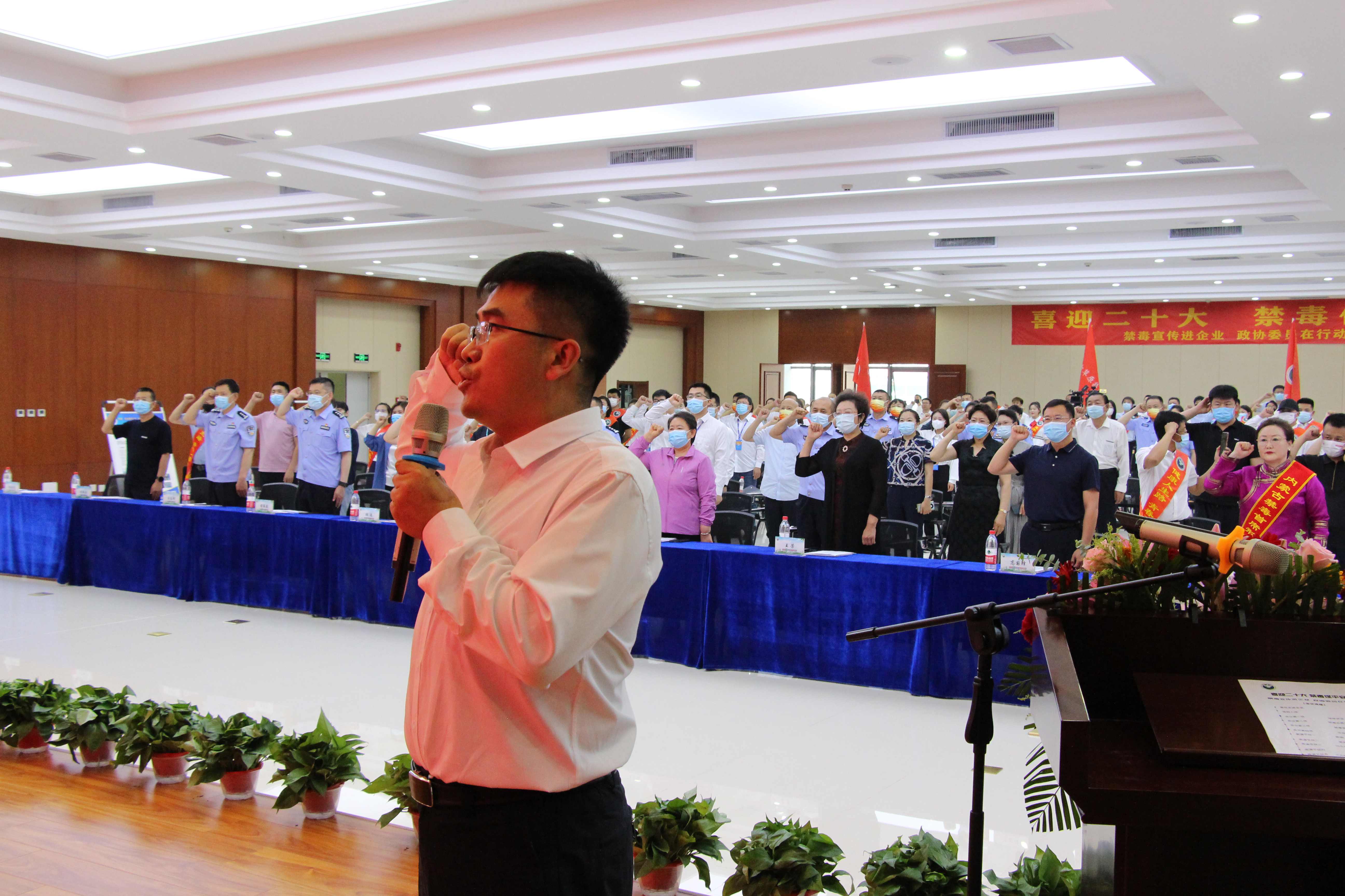 全體與會代表及公司員工在楊金光董事長的領(lǐng)誓下進行莊嚴的禁毒宣誓。